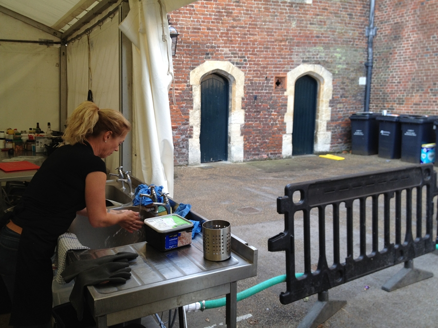 We have finally found five minutes to put up the photos from our crew and artist catering job at the Hampton Court Palace Music Festival. It was a true honour to feed the hardworking crew in such great surroundings as a Royal Palace and park, and one we are looking forward to repeating this coming June at the 2013 Festival. Being asked back means we must have done a good job and we can’t wait to see everyone again at what has to be one of the swankiest venues in town.
